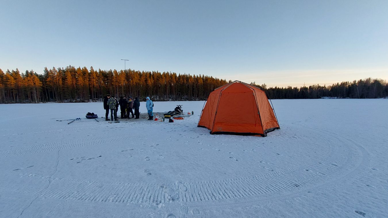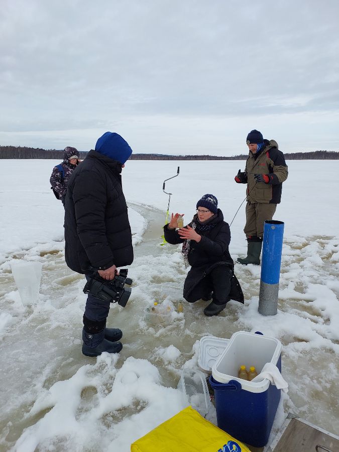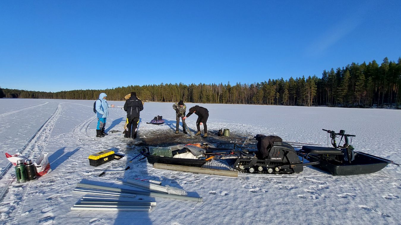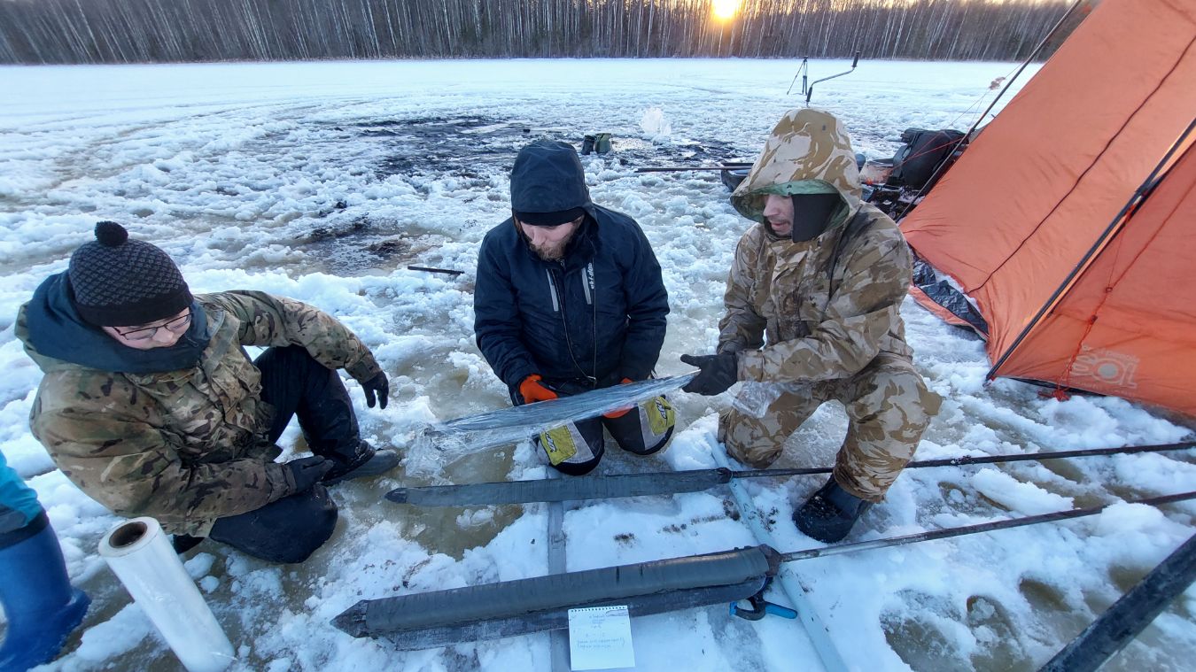 Отбор донных отложений оз. Лавкозеро с платформы