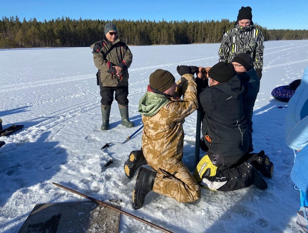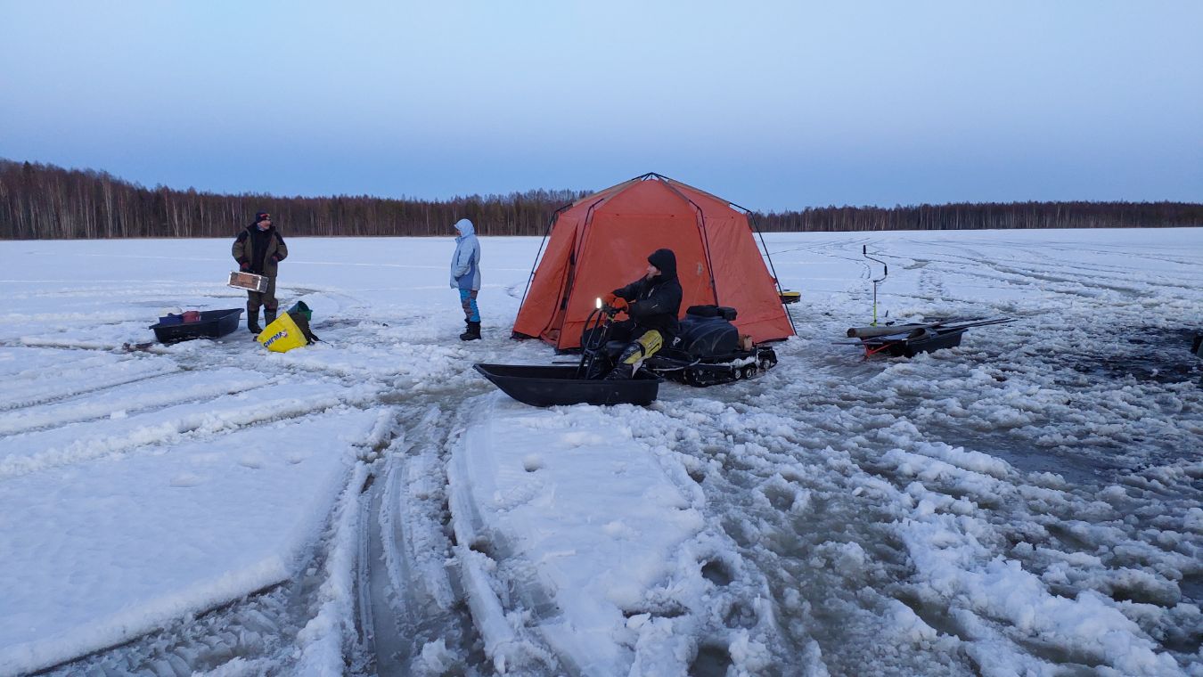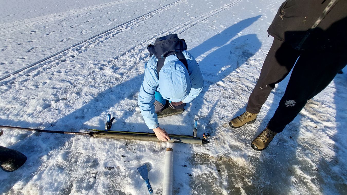 Отбор донных отложений оз. Лавкозеро с платформы